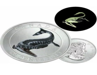 Canada 2013 25 Cent Coloured Coin Tylosaurus pembinensis Glow In The Dark