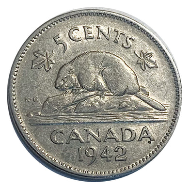 1942 Kanadische 5-Cent-Beaver-Nickel-Münze (Umlauf) VF